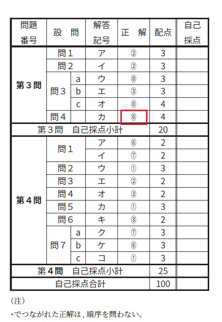 第3問 問4 (解答記号)カ(正解)1 ⇒ 0