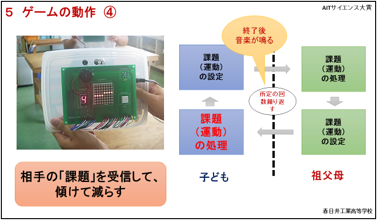 今後もリハビリ効果のある運動を提案し、孫と高齢者が楽しめる電子ゲーム機器を製作していく。