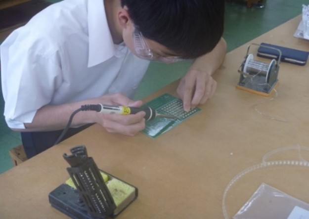 [はんだ付けに関しては、私が見本を見せ、やってもらいました。最初、1,2回は、試行錯誤していましたが、直ぐに上達しました。手先も機用でした]