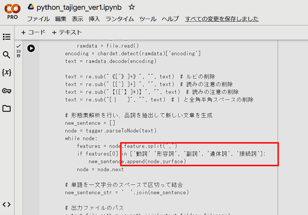 1. 抽出する品詞を設定しよう。ここを書き換えてください。